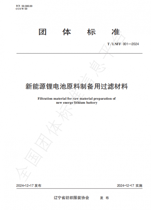 抢占新能源赛道:锂电池原料制备用过滤材料标准(T/LNFF 001-2024): 面对新能源产业的蓬勃兴起,薛晓彤以敏锐的市场洞察力,率先布局锂电池材料这一关键领域。辽宁博联牵头制定的《新能源锂电池原料制备用过滤材料》团体标准,首次系统规范了该专用过滤材料的性能指标与测试方法,为提升我国锂电池产品的一致性与安全性提供了坚实的材料基础,填补了国内空白,助力国家新能源战略。