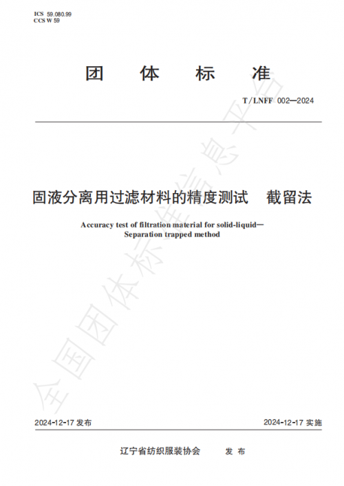 建立测试基准:固液分离用过滤材料精度测试方法标准(截留法)(T/LNFF 002-2024): 为解决行业内在过滤精度评估上的难题,辽宁博联主导制定了《固液分离用过滤材料的精度测试 截留法》团体标准。该标准为过滤材料的性能评价提供了科学、统一的依据,促进了技术交流与公平贸易,体现了辽宁博联推动行业健康发展的责任担当。