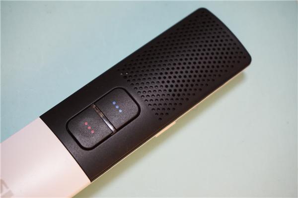 翻译机两侧分布的就是音量加减以及电源按钮,分布在翻译机的上半部分,通过触摸很容易就能定位到对应的按键。