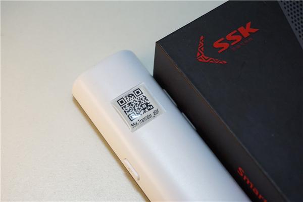 SSK飚王 Hello翻译机的背面则为连接配对二维码,二维码部分做了凸起设计。这对于背面的一体化程度有一定的影响,手指放到翻译机的背面可以明显感觉到二维码的存在。虽然说翻译机背面凸起的二维码可能比较显眼,但在初始化的时候扫描二维码可是非常重要的一步操作。