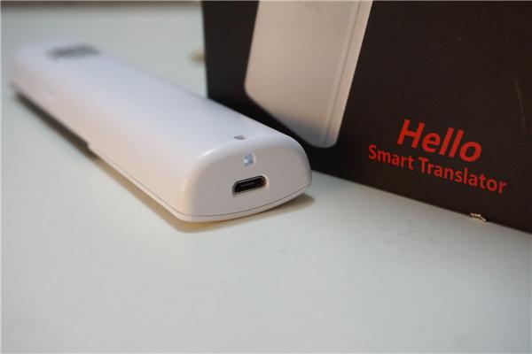 翻译机的下方为Micro USB充电接口,可通过充电头或者充电宝进行充电,使用起来更加方便。这款翻译机的电池容量为950mAh,根据官方的数据,充电两个小时,即可使用3-4个小时,待机超过120小时。