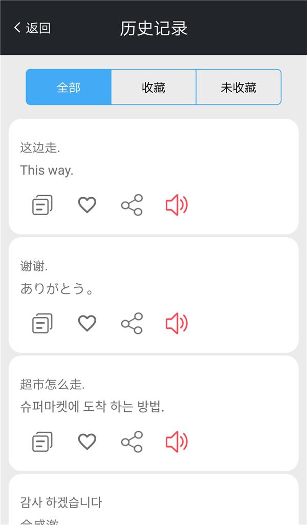 不管你是在免费模式还是收费模式下翻译过的句子,你都可以在历史记录里面找到,并且还能把一些常用的句子添加到收藏夹,下次需要使用的时候可直接从收藏夹播放即可。另外,按一下电源键即可重复播放上一条翻译结果,这些小细节都比较人性化。