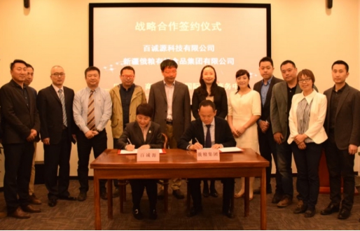 2018年4月17日,百诚源科技有限公司(以下简称:百诚源)与新疆俄粮有机食品集团有限公司(以下简称:俄粮集团)就霍尔果斯口岸资源优选境外特色商品营销展开全面合作。百诚源董事长贺冬与俄粮集团董事长古声强在协议上签字。中国国际电子商务中心主任朱小良出席见证。