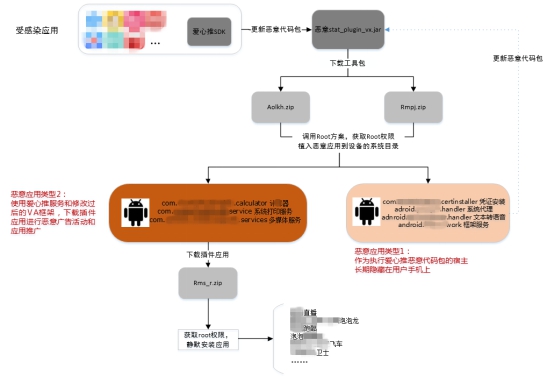 300余款知名应用软件被感染、受影响用户高达2000余万,2018年以来,首起千万级感染量恶意推广方式——“寄生推”恶意推送信息的软件开发工具包(SDK),近日被腾讯安全成功捕获。经腾讯安全专家分析发现,该SDK已经被多款百万级别用户量的应用集成使用。根据腾讯安全反诈骗实验室大数据显示,已有数十万用户的安卓设备ROM内被植入相关的恶意代码,受其影响,用户设备会不断弹出广告和应用推广。这些恶意代码,还具备了绕过应用市场检测的儿童型,以及混进应用市场等潜在风险。