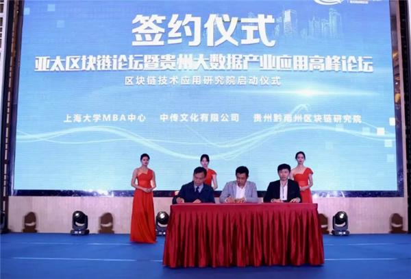 亚太区块链论坛由中传文化、上海大学MBA教育管理中心、精英会、TOS基金会、CTG软件科技研发有限公司、中企区块链有限公司、黔南州区块链技术应用研究院联合发起。