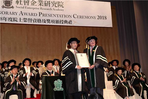 社会企业研究所常务副院长施雅德教授颁授资深院士名衔予韩世灏博士