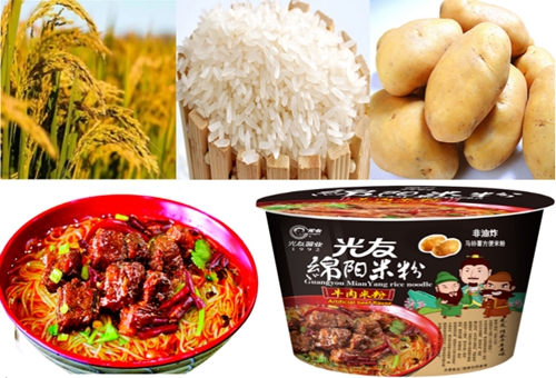 2017年,光友薯业秉承国家龙头企业的社会责任,应市场需求,将只能在餐馆食用的绵阳米粉发明为开水一泡即食,麻辣鲜香的方便主食,真材实料,传承三国好味道!