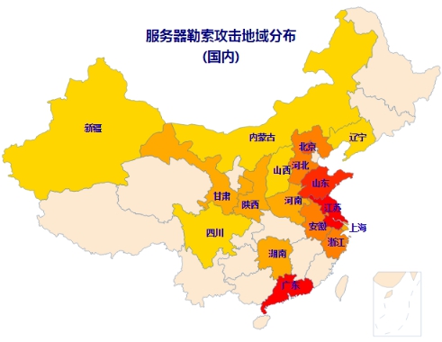 从受攻击企业的地域分布上看,江苏、广东等沿海地区被攻击的企业最多,其次是山东和北京,一定程度上表明经济越发达的省市遭受勒索病毒攻击的频率越高。