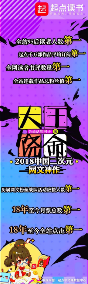 3、2018年度,起点中文网全站连载作品中,总粉丝值排名第一;