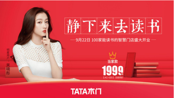 有一生所爱的人,一个想要守护的家庭,和几件怎样也割舍不下、愿意终生去做的事,这便是一个恬淡、安静的幸福生活。有多少人,因为繁杂的工作和琐事,很久没有自在的时光留给自己和家人,在繁华落幕之后,有没有一个较为安静、舒适的空间,能让人放松下来沉浸其中。9月22日,TATA木门联合天猫携手90后影视圈“学霸”关晓彤一起打造了专属于爱家读者的超级品牌日活动,在全国范围内推出100家智慧门店,以阅读的方式与读者一同静下心来去感受家庭的安静,家庭的幸福。