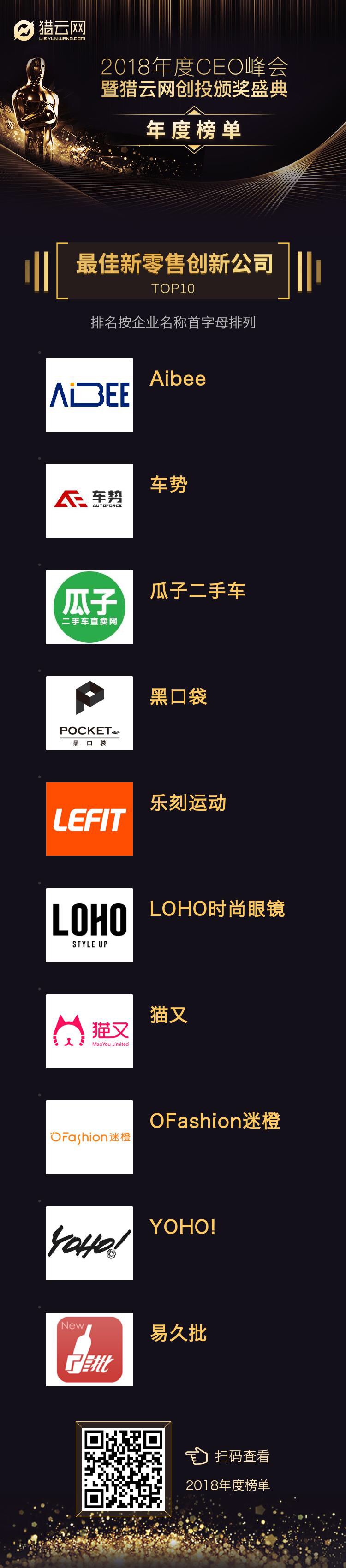 会上揭晓了2018年度创业领军人物、最佳独角兽潜力创业公司等14个奖项榜单,榜单经过线上投票及知名投资人、媒体人组成的专家评审团综合评定得出。其中企业类榜单投票占比20%+评委评选占比80%。通过评审团对企业综合实力、发展前景、行业口碑、团队潜力等多方面指标考核,最终LOHO时尚眼镜从100多家企业中成功突围,与YOHO有货、OFashion迷橙、瓜子二手车等知名品牌一起,获得最佳新零售创新公司奖项。