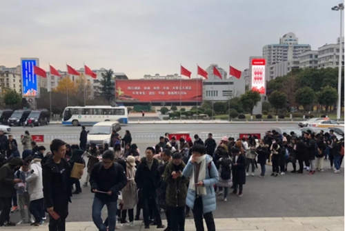 2018年12月9日,武汉寒风侵肌,上午8时许,位于武昌的洪山礼堂门口却早已排起了长队。不忘初心、继续前进 ——“红船精神”主题宣讲走进湖北首场活动在这里举行。