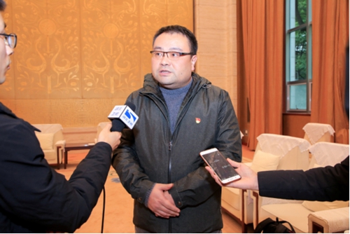 (宣讲结束后,武汉地产集团“劳模”接受媒体采访)