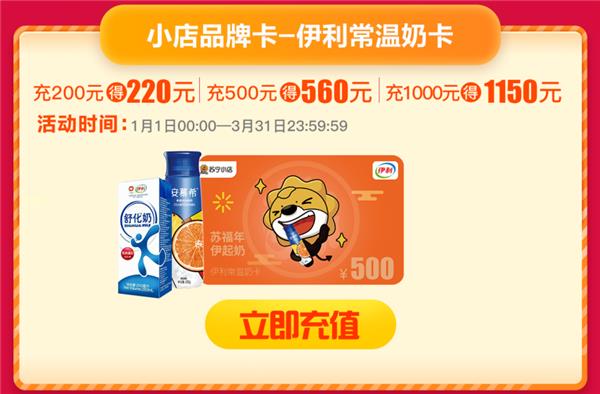 近日,苏宁金融旗下苏宁卡携手苏宁小店,与国内乳业龙头品牌伊利达成战略合作,三方从用户体验入手,共同打造可供线上线下双线使用的新型奶卡产品——小店伊利卡,方便消费者饮用奶制品的多种需求。现在充值“小店伊利卡”,最高还可返赠300元。