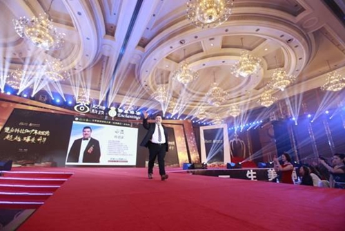△云南省民营企业家协会会长花泽飞夫妇为季军刘娇女士颁奖