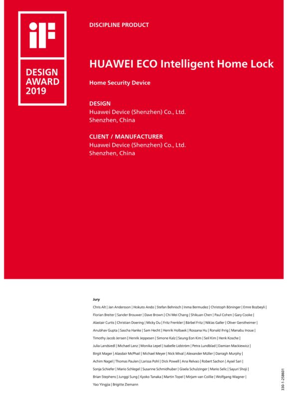近日,2019年度德国汉诺威iF设计奖公布获奖名单,汇泰龙与华为智选联合设计的“华为智选生态产品 汇泰龙智能指纹锁”凭借优秀的工业设计,斩获iF工业设计大奖,向全球消费者展示了汇泰龙与华为智选在工业设计和创新研发上的实力。