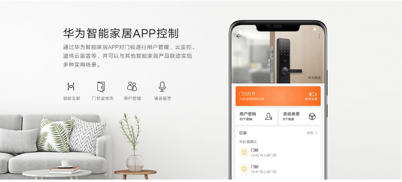 设计是温馨并存的。华为智选生态产品 汇泰龙智能指纹锁与网关搭配使用,实现温情语音留言、智能联控等多种功能。与华为智选生态圈其他智能设备联动后,“回家时,灯光等家电自动开启,安防设备自动撤防”等充满科技感的体验统统都可以成真!
