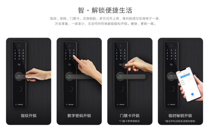 设计反映生活品质。华为智选生态产品 汇泰龙智能指纹锁拥有指纹、密码、感应卡和临时密钥等多种开锁方式。指纹开锁采用进口FPC指纹传感器,360度精准指纹识别,指纹识别与下压把手一气呵成。不仅抛弃钥匙烦恼,开门回家还要快人一步。