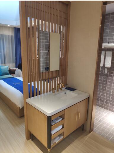 在风格定位上,样板间里面向中端商旅审美的蓝、金主打色搭配,简洁明净的家具、陈设等,能够给宾客带来最直观的“高雅感”。特别是蓝、金主打色搭配,构建了沉稳大气的北美风格,让速8精选酒店更具辨识度。原木色装修,简约温馨,是回归自然的“金”;对比色小面积“蓝”,又给整体环境带来一丝亮色与生机,给人一种清爽素雅的感官享受。据了解,速8精选酒店的目标不仅仅是创造一个优美的住宿环境,它还将致力于为商旅人士提供一个喧嚣都市中的心灵栖息地。