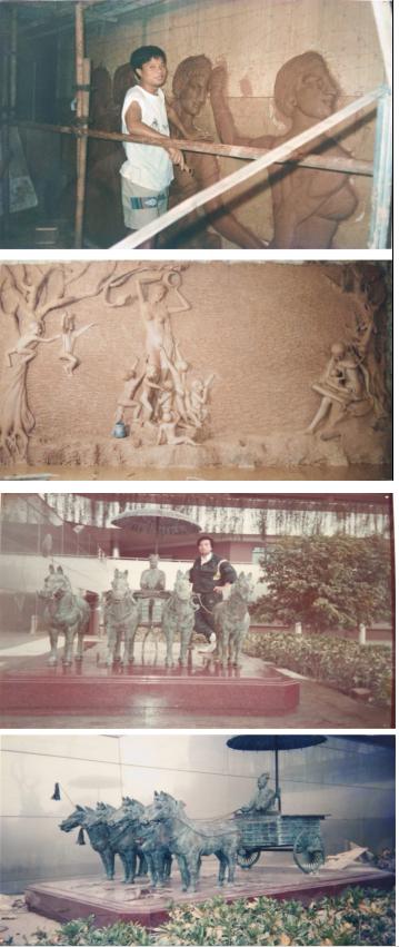浮雕《赛龙舟》美在花城大型舞台《金、木、水、火、土》的雕塑制作,《龙马精神》大型雕塑制作设计。《新东阳的早晨》雕塑设计制作。海龙湾大型楼盘景观设计及制作荣获十佳景点奖。参加人民大会堂广东厅,《海南风光》春夏秋冬制作。独创主笔大型佛教圣地《观音》音乐喷泉。横店影视城248米龙景山庄,大型大门景观等均获得优秀奖及好评,其中,纪念毛主席,邓小平诞辰100周年书画展的书画作品均获得优秀奖。1991年老区人民迎亚运陶瓷包装盒获奖并刊载于“中国青年报”获得好评!他的作品具有很高的观赏与收藏的价值,是一位集书法、绘画、雕塑、景观设计为一身的实力派艺术家。