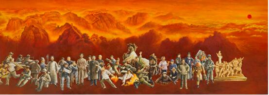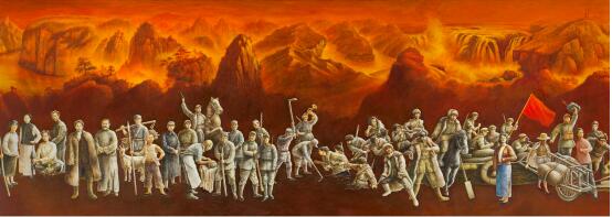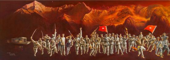 以上作品名称《江山涌铸》大型红色题材油画。规格:1米*8.4米。