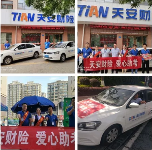 考前,天安财险陕西分公司组织并号召各分支机构数百名员工以及天安爱心客户组成爱心车队,为参加高考的广大考生提供无偿送考服务。还在部分重点考场外设置爱心加油站,向考生及候考家长提供饮用水、防暑急救药品,临近考场的门店、服务网点还为考生和家长提供休息场所。