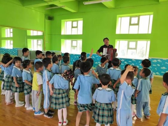 广东幼教帮扶团主任徐捷在疏附县中心幼儿园开展音乐教学活动。