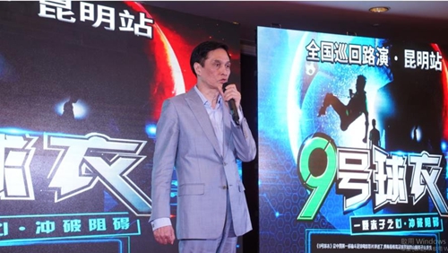 为此《9号球衣》电影制作团队及知名导演郑伦境所带领的台湾电影制作团队,于7月10日于昆明「佳华广场酒店」共同举办《9号球衣》电影全国路演暨昆明学冠影业公司成立发布会,现场众星云集,出席的嘉宾除了省市各级领导外,更有来自全国的数百家企业家,最具代表性的是,学冠影业总裁陈政峰、知名电影制作人施冬梅、台湾耀太珠宝董事長安迪、深圳正唐科技董事長刘如旺、日淘君国际贸易CEO廖倾城与总经理苏正勋、云南斌洲贸易总经理刘传正、东普传媒执行长范圣琦、泰喆创艺设计张丁中、张丁元、金鱼数字影音娱乐李冠宏等企业人士出席本次活动。