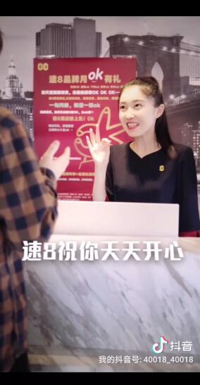 速8酒店品牌月通过线上线下的整合营销引发了一场真正的全民性互动狂欢。品牌月活动期间,速8酒店官方微博粉丝持续爆增,官方抖音、微信公众号也收获大量的关注。其微博不定期发布的抽奖信息获得网友的积极参与,并获得网友主动转发、点赞、评论。上万网友的参与将这次营销活动一次次推向高潮。而入住门店的消费者,则通过“双ok”的手势与门店服务人员进行亲切互动,获得酒店提供的免费健身、房价折扣、手机指环、以及合作公司赞助的礼品等各式各样的惊喜礼品。