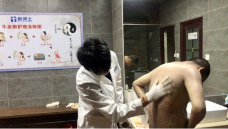 据厦门癣博士负责人萧先生介绍,其实牛皮癣从另一个角度看,并没那么可怕,把治疗牛皮癣看作是一个美容皮肤的项目,就好比女性护理自己皮肤一样,纯中药独家配制的护理膏,直接作用于皮肤,配合高温汗蒸,加速毛孔打开,促进皮肤对护理膏的吸收,达到短期内见效,稳定皮肤的一个状况,这个状况也就是无异于常人的皮肤状况。不仅如此,厦门癣博士对每个牛皮癣、鱼鳞病客户都会私人订制护理方案,因人而异把复发率降到最低,最重要的是,这种方式不需要长期依赖护理膏,后期只需要用普通的润肤乳代替护理即可。