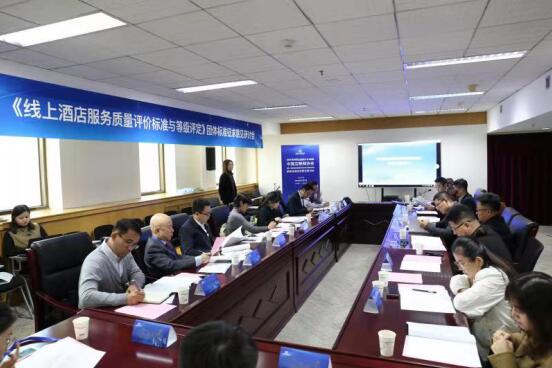 图1,《线上酒店服务质量评价标准与等级评定》团体标准征求意见研讨会会场。